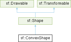 This class inherits all the functions of sf::Transformable (position, rotation, scale, bounds, ...) as well as the functions of sf::Shape (outline, color, texture, ...).
