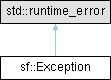 Inheritance diagram for sf::Exception: